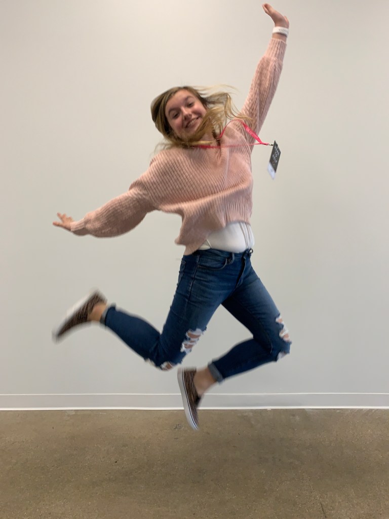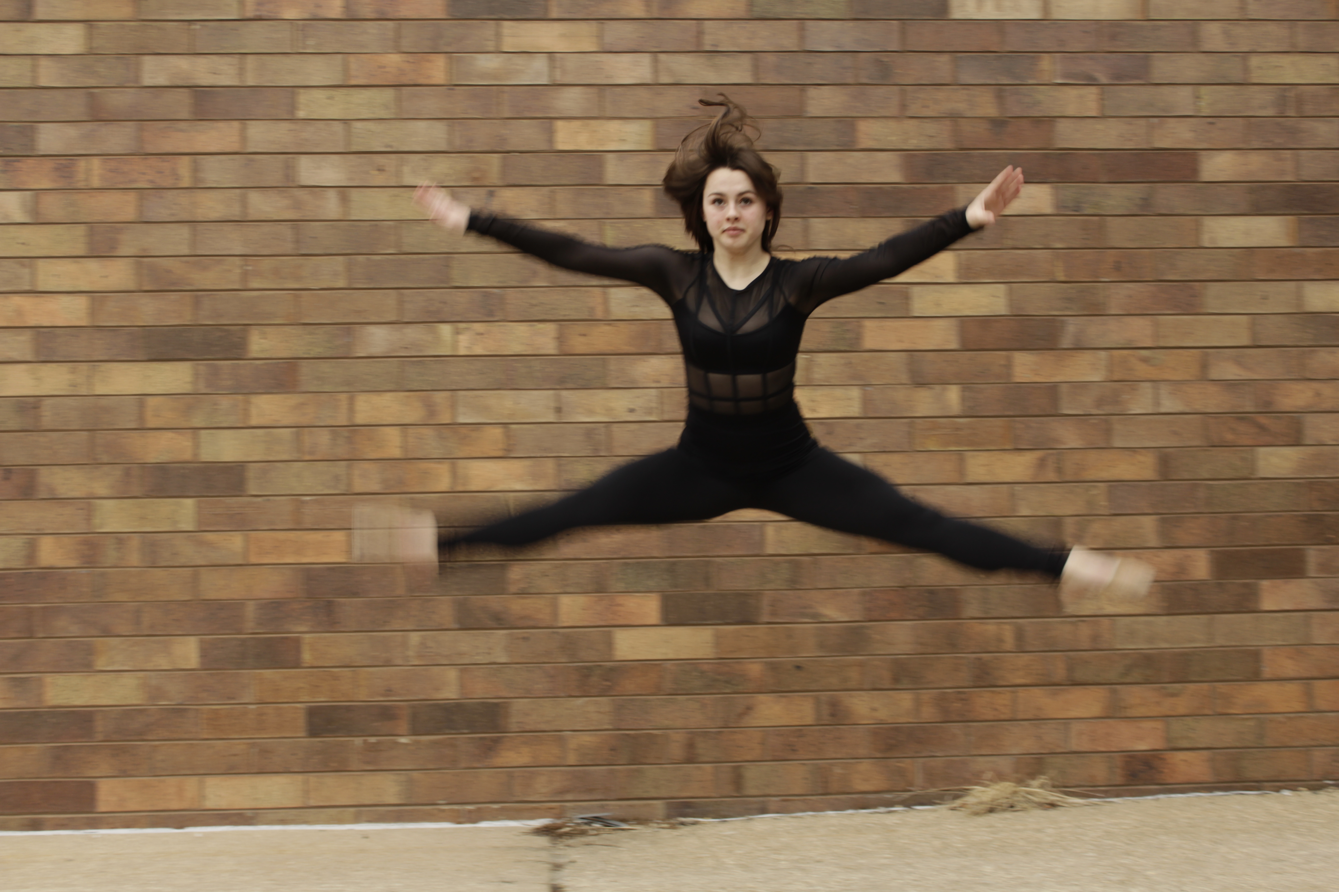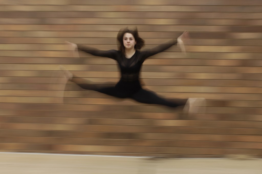 This is an image of a girl jumping with excitement. The only thing I wish to change about this photo is the clarity of all parts of her body, mainly her feet.