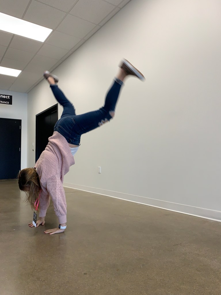 The timing of this photo was well done, however the clarity of her feet could be more sharp. Also the angle of the photo could have been changed to create less distraction.