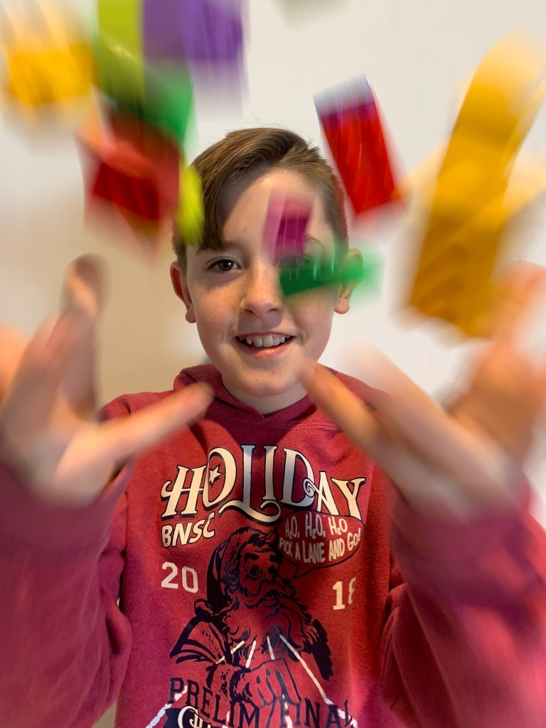 This image is of a boy throwing legos in the air. The timing of this photo was done well. I love the clarity of his happy face in the middle of the blur of the falling legos.