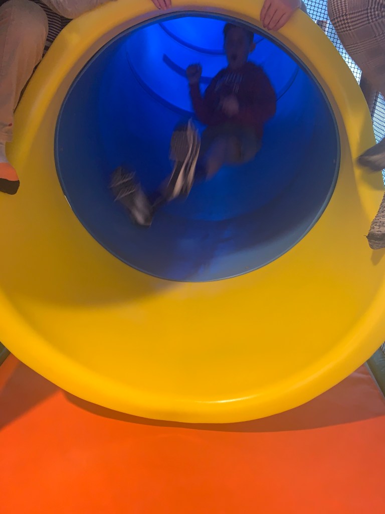 This is an image of a child sliding down a slide. If I could change anything about this photo I would have the child more in focus with details of him blurred to show the speed instead of his phone body as a blur.
